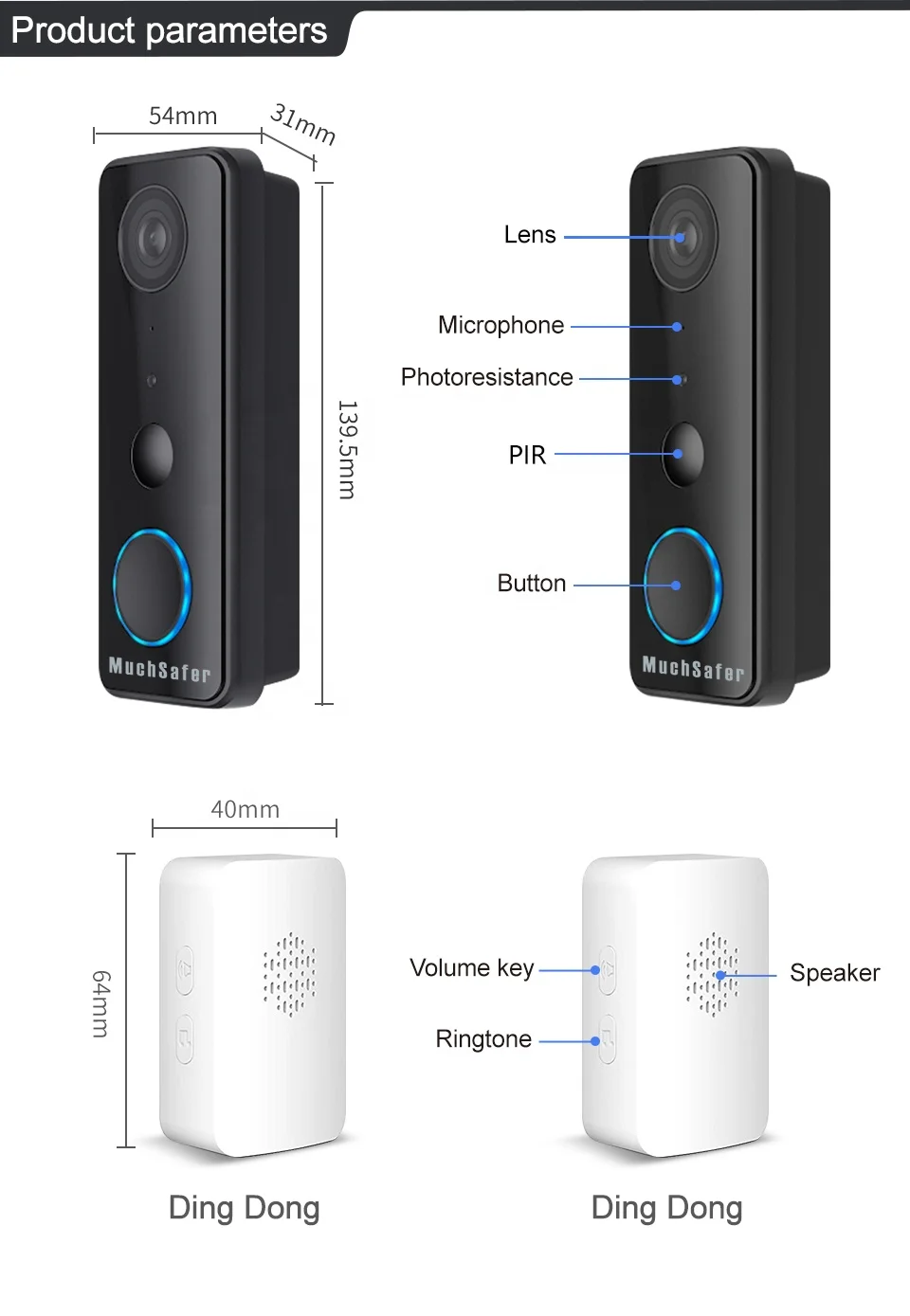 Company Information Highlights (1) Tuya Wifi Bluetooth 1080P Video Doorbell with Wireless chime (2) IP54 Waterproof (3) Support Alexa and Google Home function (4) Alarm Call Notification (5) Support US/EU/AU/UK wireless chime (6) Support OEM service even for small order Our Services