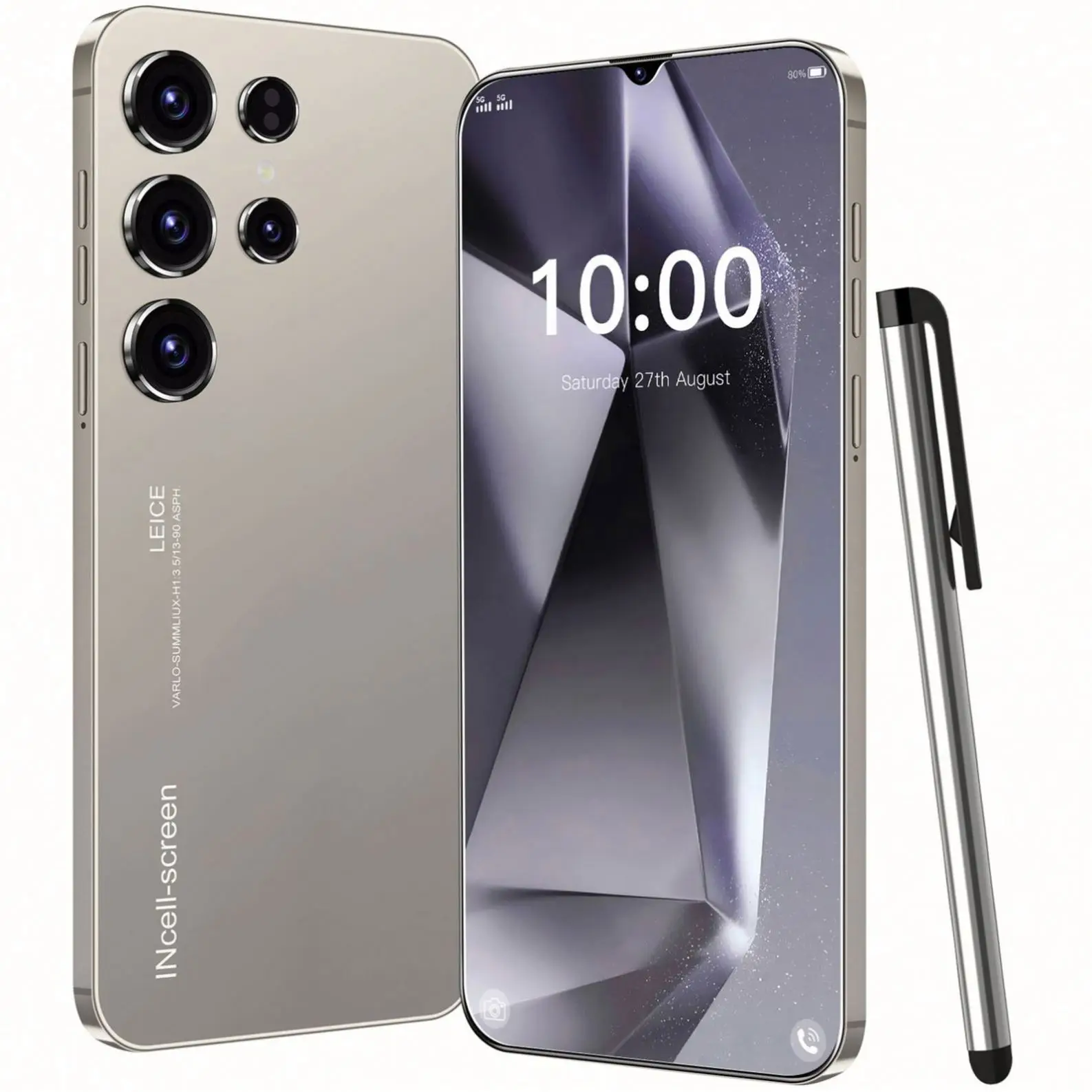 Product Name S24 ultra Standby Dual sim dual standby(A slot support SIM card, another slot support SIM card or TF card) Screen 6.7HD+ 1440 * 3040 Package Included 1 x Smartphone, 1 x Charger Adapter 1 x Headphones, 1 x User Manual 1x phone case 1x Protection film 1x Pen Frequency GSM850/900/1800/1900MHz, 3G: WCDMA850/2200MHz, 4G 5G LTE Colors Blue, Black,Gold Multi Function Full screen, Face recognition,Screen finger print, Dual SIM, Wifi, GPS, Gravity Sensor, Alarm ,Calendar ,Calculator ,Audio recorder ,Video recorder, WAP/MMS/GPR, Image viewer,E-Book,World clock,Tasks card rear flash IML rear cover