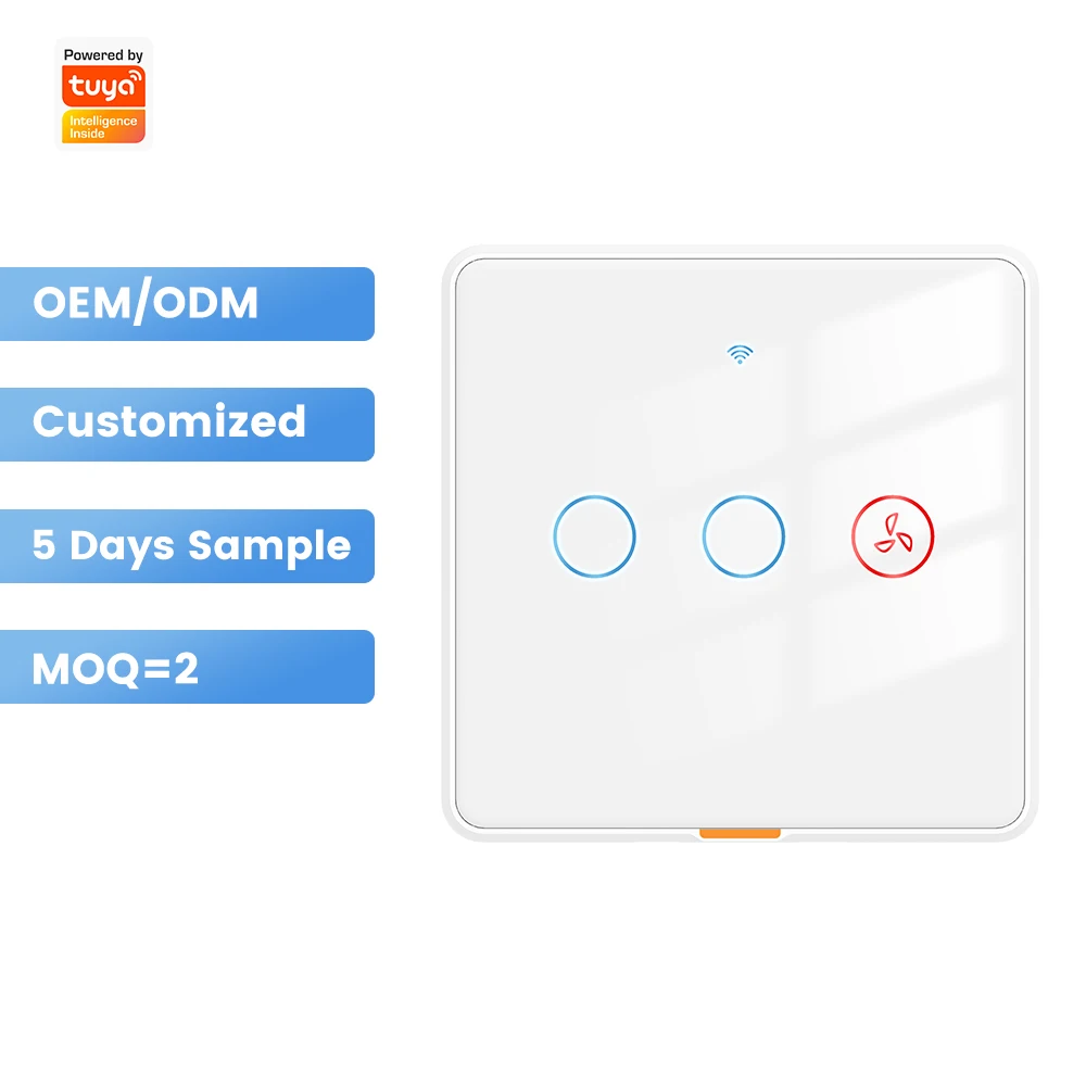 SMATRUL No Neutral Wire Tuya Smart WiFi RF433 Ceiling Fan Light Switch Glass Panel Backlight Voice Control for Alexa/Google Home