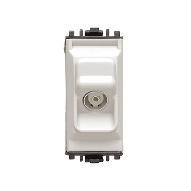 It is non isolated socket outlet, Modular, Grid plus, For direct connection to TV or FM aerial co – axial downlead. Not to be used in same enclosure as mains exceeding 50V · · · Colour: White · · Voltage Rating: 230V · · Insert Colour: White · · Number of Gangs: Single Gang · · Number of Outlets: 1 Outlets