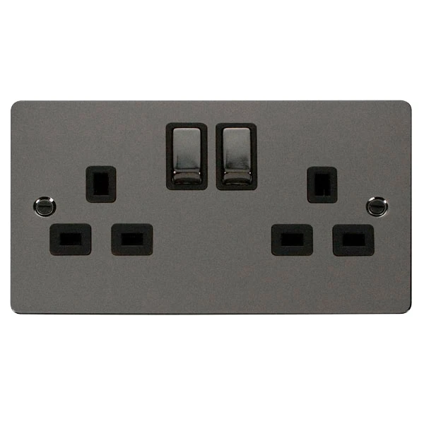 Socket 2 Gang DP Switched 13A Black Nickel Black Insert