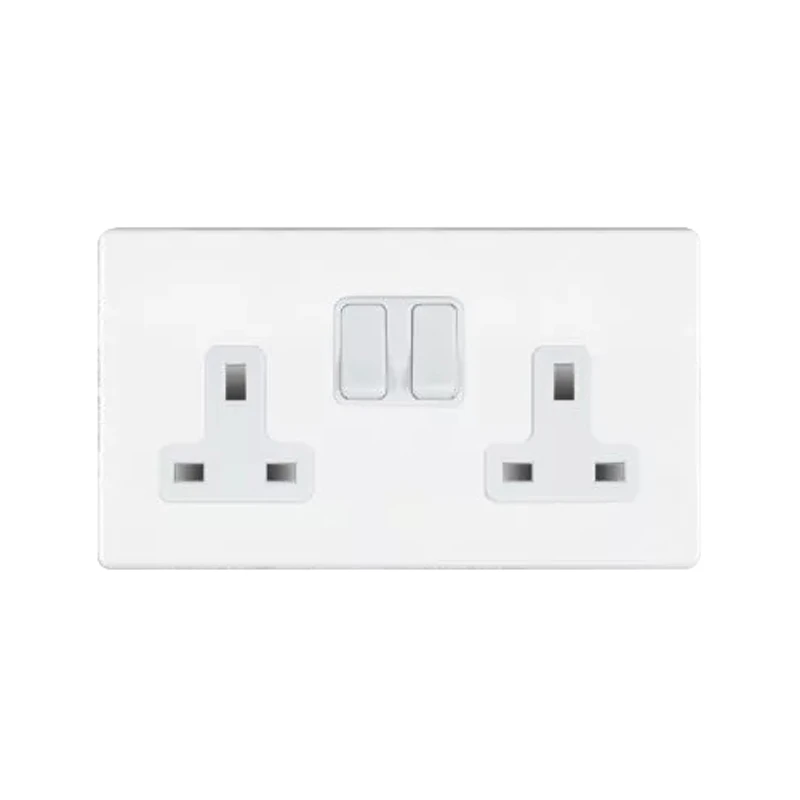 Socket 2 Gang Switched 13A 145 x 86mm Bright White White Insert
