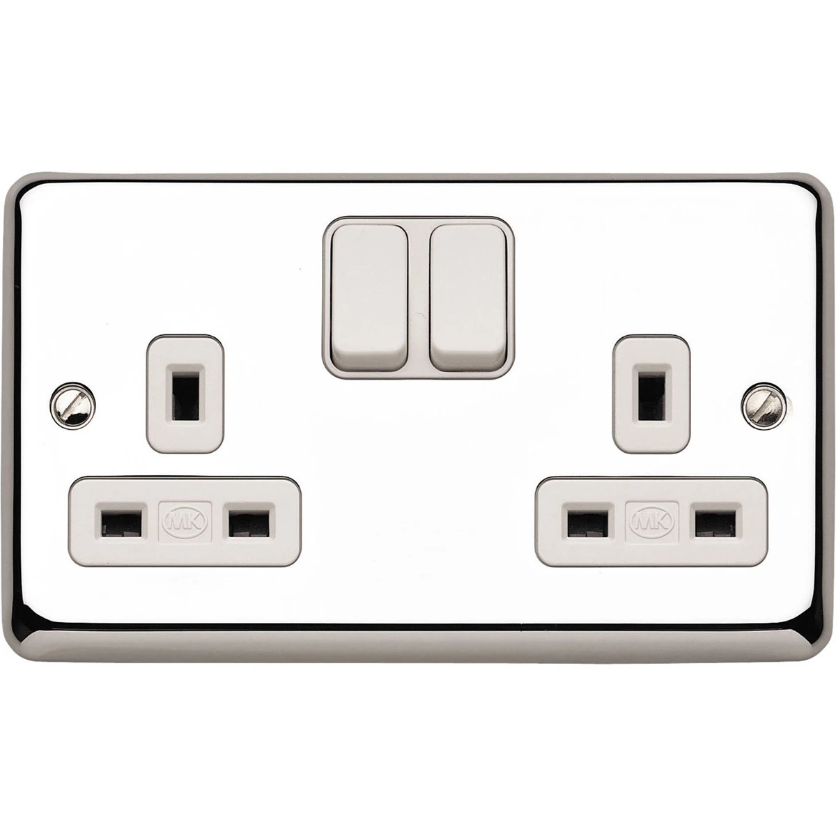 Socket 2 Gang Switched Double Pole 13A Polished Chrome