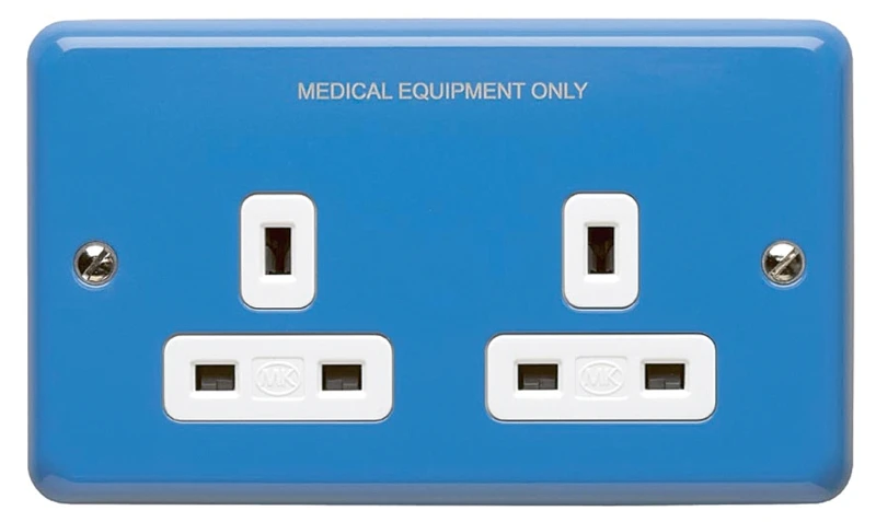 Socket 2 Gang Unswitched Clean Earth 13A Blue ‘Medical Equipment Only’