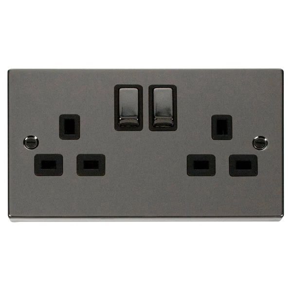 Socket Ingot 2 Gang Double Pole Switched 13A Black Nickel Black
