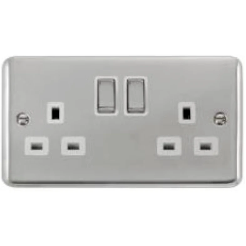 Socket Ingot 2 Gang DP Switched 13A Polished Chrome White Insert