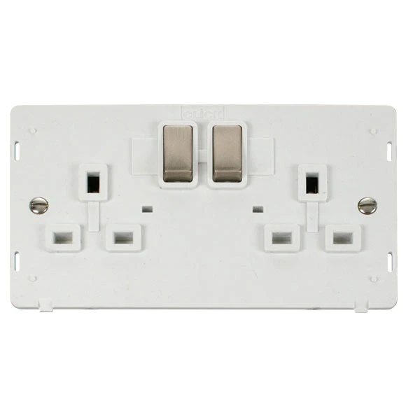 Socket Interior Ingot 2 Gang DP Switched 13A Polar White Brushed Stnl
