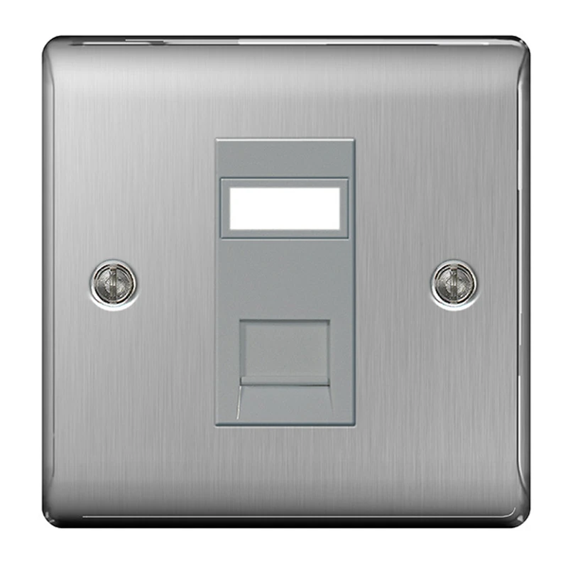 Socket RJ45 1 Gang Brushed Steel