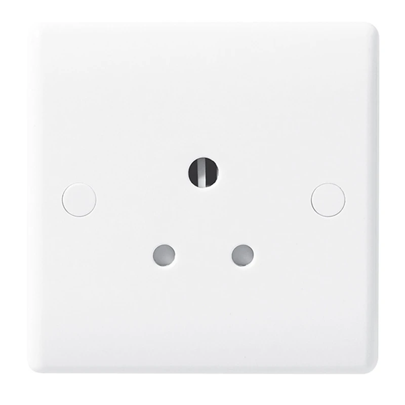 BG Unswitched Round Pin Socket is available in a subtle design which will blend with any decor suitable for domestic and commercial installations. Universal socket will accept BS, USA and CEE plugs. All switches are 10AX inductive rated with captive terminal. · · · Stylish modern profile · · Covers to conceal fixing screws · · Colour coded terminals for easy installation · · Colour coded terminals with backed out captive screws for easy installation