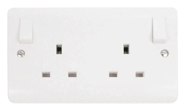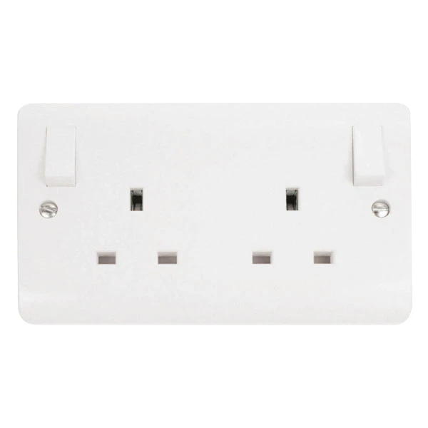 Socket Switched 2 Gang 13A White Outboard Rockers