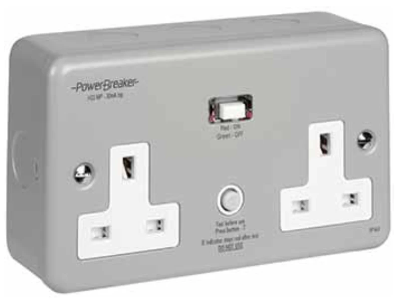 GreenBrook Electrical H22-MP PowerBreaker Socket Twin Passive RCD Double 30mA Metal · · · Product: Socket Outlet · · Qualifier: Passive · · Switched/Unswitched: Unswitched · · Gangs: 2 Gang · · Includes 13A Switch Socket?: N · · Includes RCD?: Y · · Neon Indicator: N · · Pole Configuration: Double Pole (2P) · · Flex Outlet: N · · Fuse Fitted: N