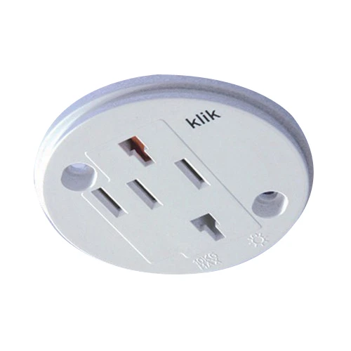 Circular socket for plug-in ceiling controls. Product code: CESO For use with DANLERS plug-in ceiling controls. Can be mounted on a BESA box. Also available as a square socket. · · · For use with DANLERS plug-in ceiling controls · · Can be mounted on a BESA box · · 74mm diameter x 13mm · · Provides a convenient and accessible power outlet for ceiling fixtures, such as fans, lights, and speakers