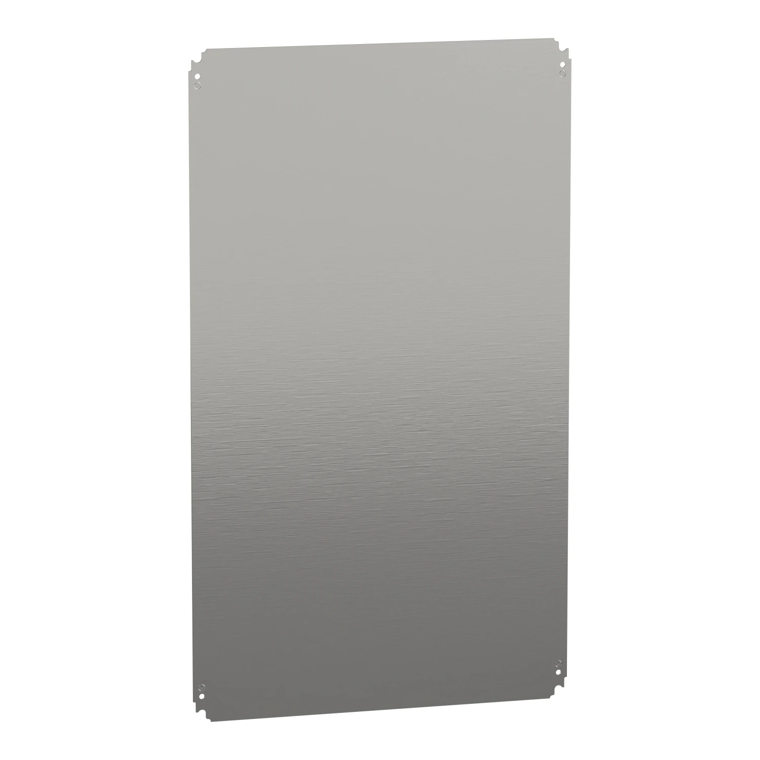 Plain mounting plate for Spacial CRN, S3D, S3X, PLM. For enclosures H is1000 x W is600 mm. Multi-purpose mounting accessory. Step slide mounting location or direct fixing on backstuds (M8 screws). 150 Kg permissible load. Galvanised steel. Set of 1. · · · Plain mounting plate for Spacial CRN, S3D, S3X, PLM. · · For enclosures H is1000 x W is600 mm. · · Multi-purpose mounting accessory. · · Step slide mounting location or direct fixing on backstuds (M8 screws). 150 Kg permissible load. · · Galvanised steel.