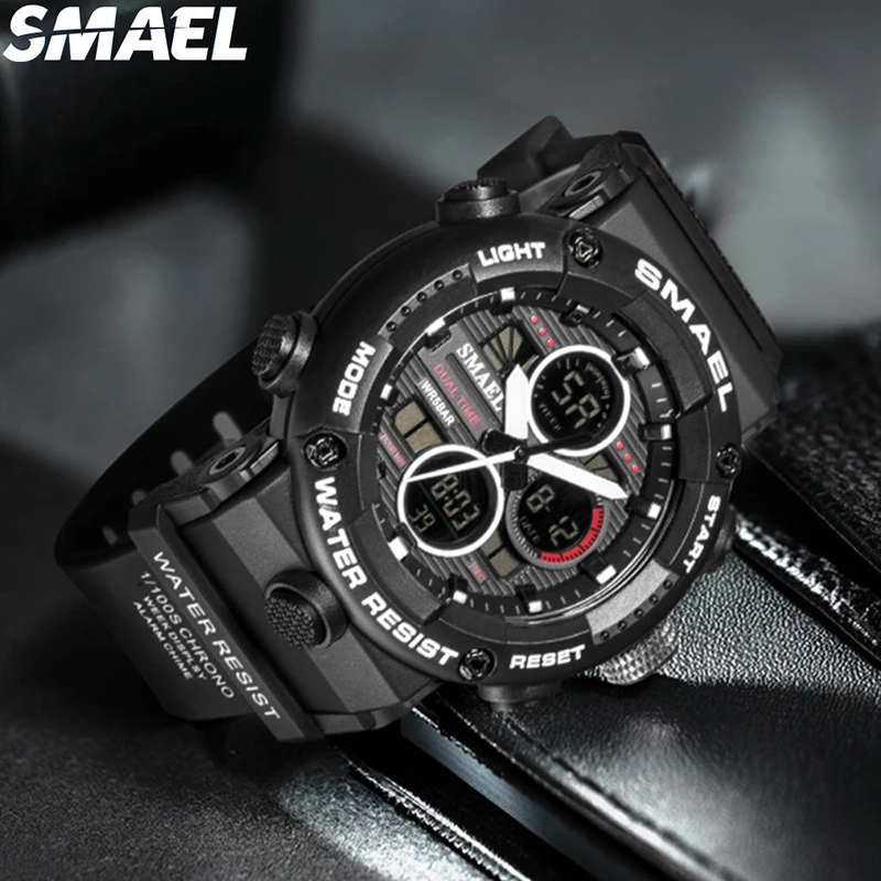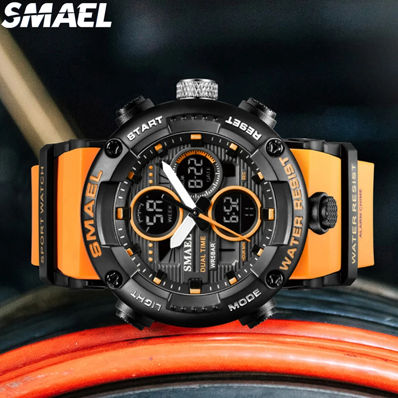 Sport Waterproof Analog-Digital Plastic Band SMAEL 8038 Watch Stopwatch Alarm Clock Young Fashion Digital Quartz Men Pack of 2