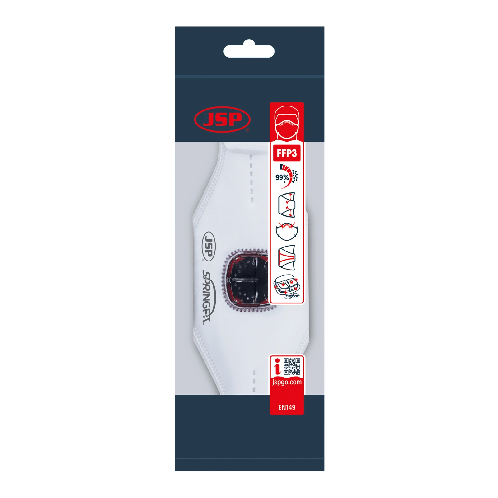 The NEW SpringFit fold flat disposable mask achieves an unrivalled secure fit with the use of a unique endoskeleton structure. SpringFit introduces an abundance of features that maximise fit, comfort, compatibility and performance. · · · Fold flat disposable mask achieves an unrivalled secure fit · · Unique endoskeleton structure · · The Unique Typhoon ™ valve has been designed to Reduce breathing resistance, heat and moisture build-up · · Compact and easily pocketed · · The SpringFit Range – Available in FFP3 and FFP2 valved and unvalved, with a nuisance odour carbon layer available on the FFP3 model. · · Typhoon Valve – The Unique Typhoon valve has been designed to reduce breathing resistance, heat and moisture build-up. The valve is unaffected by any moisture, and therefore can be used with the same performance under very low temperatures.