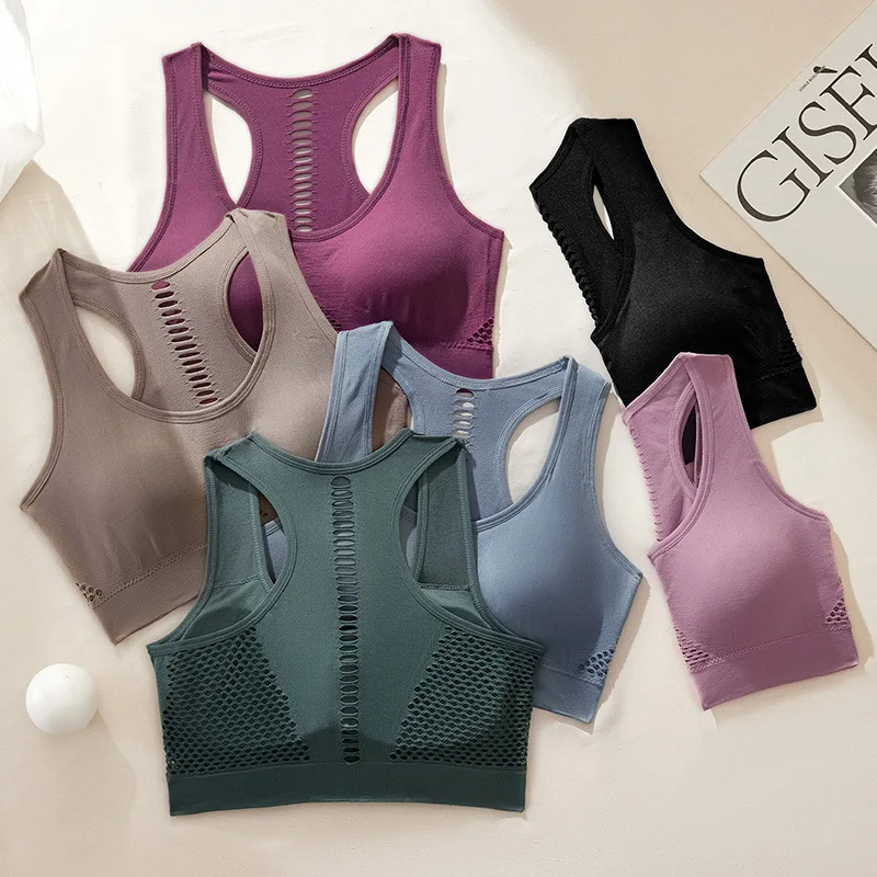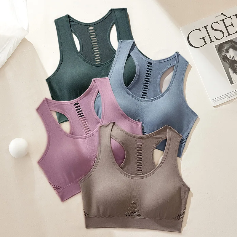 Stable Cushioning Industrial Back Seamless Nylon Breathable Yoga Sports Underwear Racerback Straps High Support Steel Ring