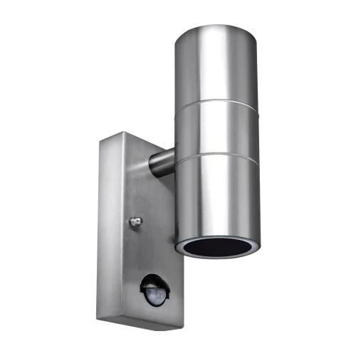 Stainless Steel Outdoor Decorative GU10 Up/Down Wall Light With PIR Motion Sensor IP54