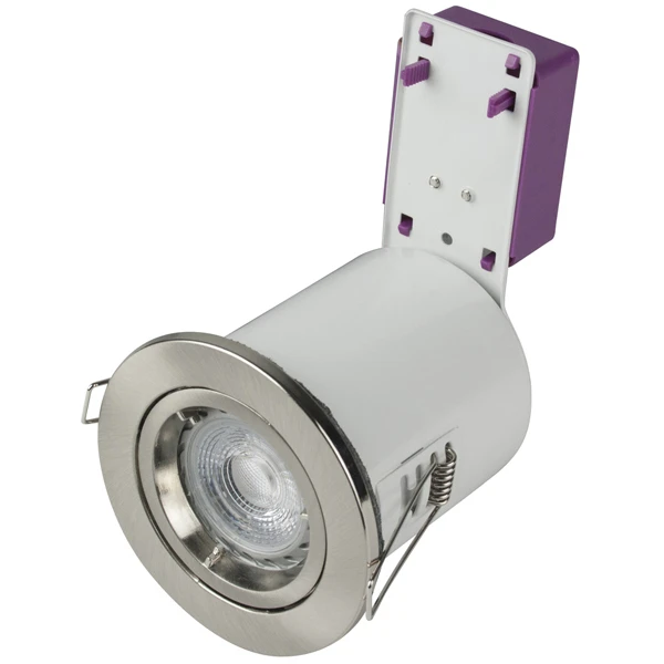 STARLING 50W mains voltage steel fire rated downlight, IP20, · · · Suitable for offices, retails shops, reception areas, hotels, restaurants, bars and clubs, showrooms · · Recessed downlights with pressed steel body and front bezel · · Fitting design and itumesent seals retain the integrity of 30, 60, 90 minute fire rated ceiling/floor constructions · · Complies with BS476 Part 21 · · Complies with dichroic and aluminum lamp types · · Class 1 Construction · · Compatible with GU10 Halogen and some other LED fittings “