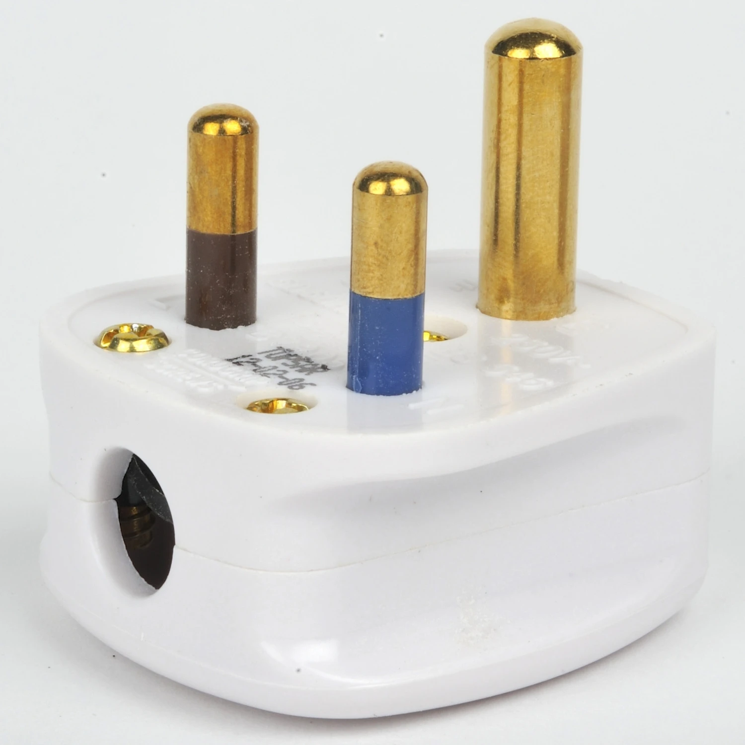 Unfused round 3 pin plug · · · Material: Urea (carbamide) · · IP20 rated · · BS 546 · · 5 A at 230 V AC 50 Hz · · Round Pin