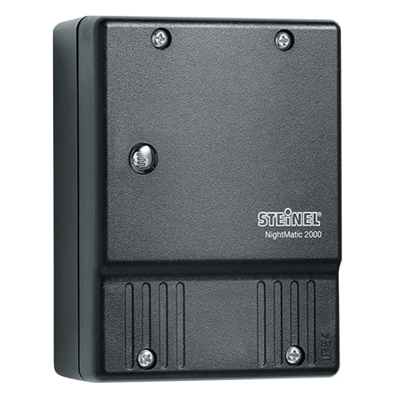 Steinel NightMatic 2000 Photo-electric Lighting Controller for controlling lighting systems for building fronts, properties, shop windows etc., automatically switches light ON at dusk automatically OFF again at dawn. · · · Light sensor technology · · Surface wiring type installation · · Automatically switches light ‘ON’ at dusk automatically ‘OFF’ again at dawn · · 3-Years warranty · · Automatic illumination