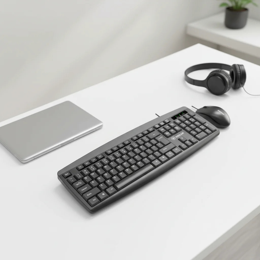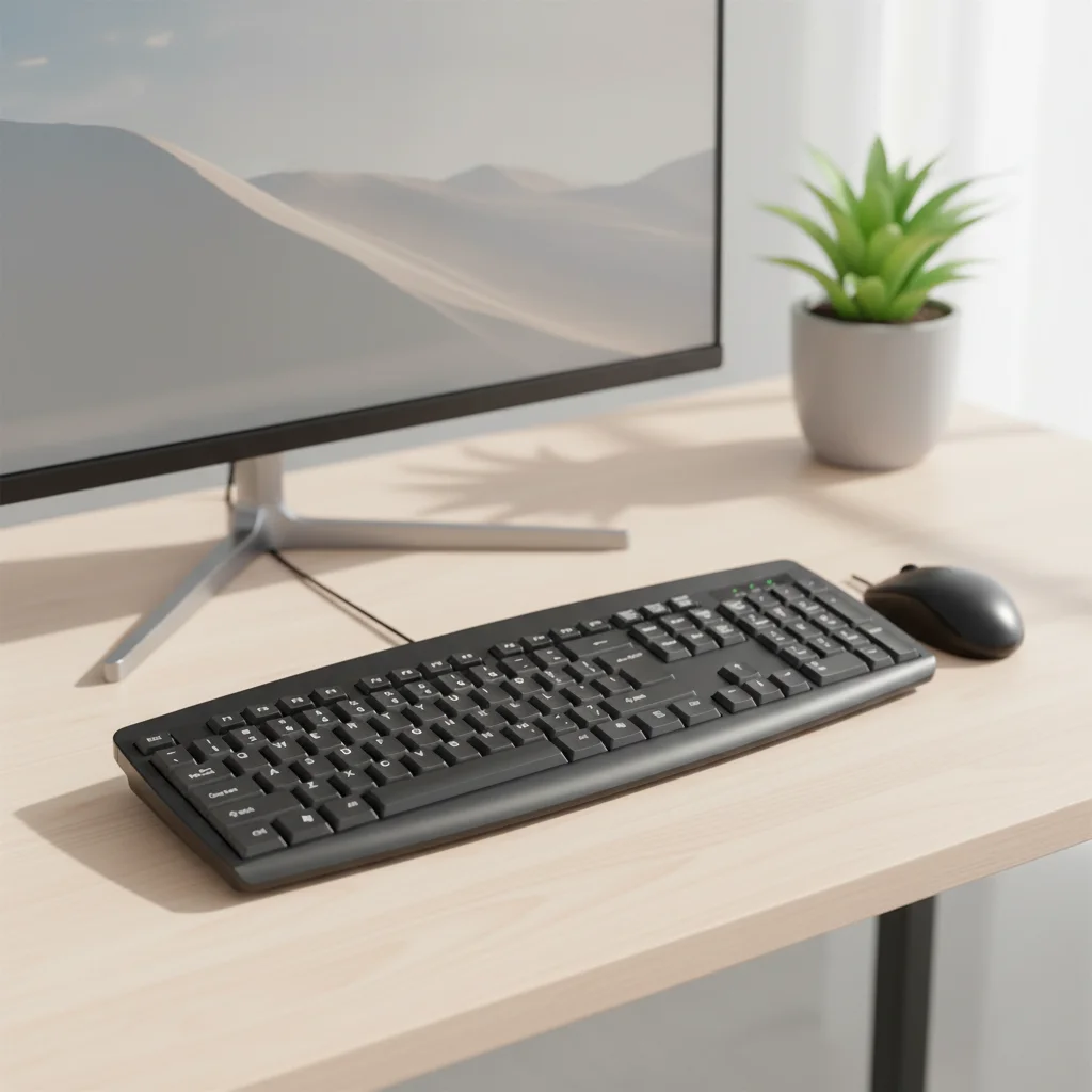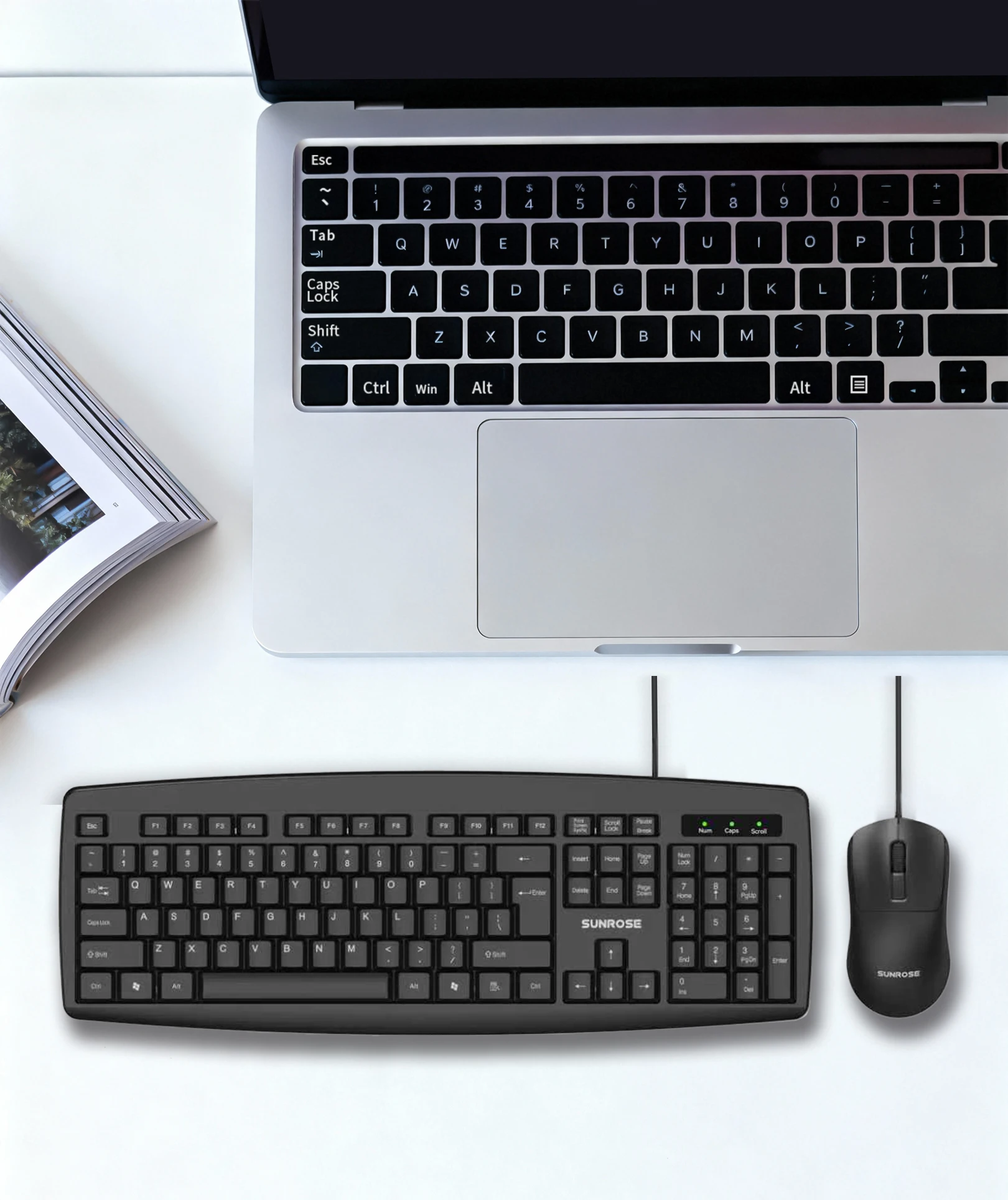 Sunrose T13s USB Wired Gaming Slim 104-Key Full-Size Plug-and-Play Keyboard and Mouse Set for PC and Laptops