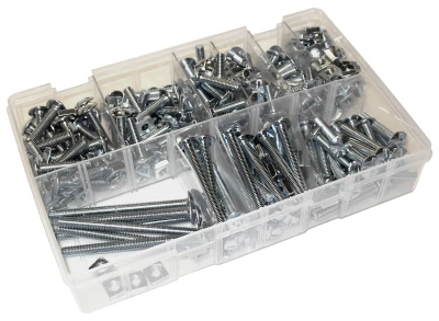Fix-a-box roofing bolts and nuts set contains a selection of M6x10, M6x12, M6x16, M6x20, M6x25, M6x30, M6x40, M6x50, M6x60, M6x80 plus M6 square nuts.