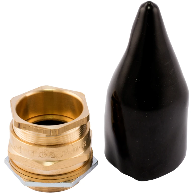 Brass indoor and outdoor gland suitable for all types of unarmoured cable, providing a seal on the outer sheath providing a IP66 rating.