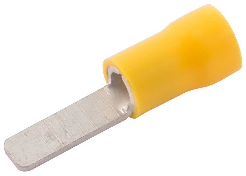18mm yellow SWA blade terminals manufactured from copper , insulated by polyvinyl chloride, max electrical rating 48 amps and ROHS complaint. (Pack quantity : 100)