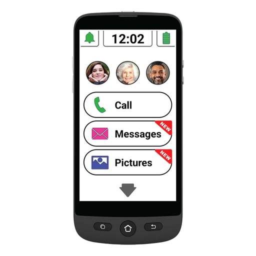 Swissvoice simple any SIM smartphone with SOS button for seniors with charging cradle | Simple to use 4G mobile with SOS button, large touch or long press button display and extra loud ringer | Suitable for the visually impaired and hard of hearing | Hearing Aid compatible | Big key board for easy messaging & talking numbers | SOS button directly contacts emergency contact once pressed with GPS location | Powerful 8MP and 5MP cameras for capturing moments | Runs on Android 12 go for smooth operation | Three photo memories to call favourite contacts directly | Text to speech messages read out
