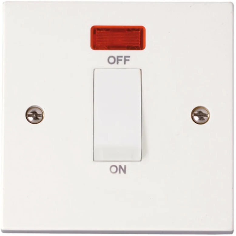 Scolmore International PRW501 Polar Switch 1 Gang DP c/w Neon 45A White · · · Product: Switch · · Type: Control · · Switched/Unswitched: Switched · · Gangs: 1 Gang · · Includes 13A Switch Socket?: N · · Includes RCD?: N · · Neon Indicator: Y · · Pole Configuration: Double Pole (2P) · · Flex Outlet: N · · Fuse Fitted: N