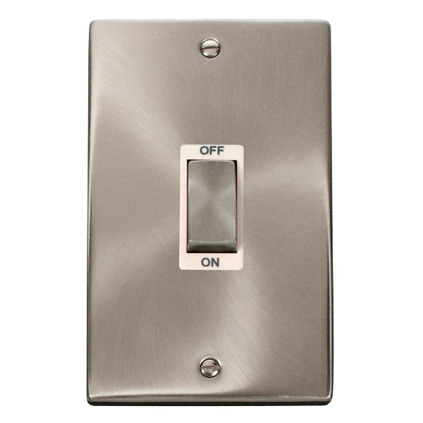Switch 2 Gang DP 45A Satin Chrome White Insert Victorian