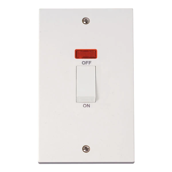Scolmore Polar Switch is a smooth modern lines of accessory plate will fit easily into traditional and contemporary designs alike. Polar 45A cooker switches are designed to fit effortlessly with the range, with simple installation to enhance the décor of any area. Simple, single screw fixing of modules offers the simplest possible means of installing and replacing modules. · · · White finish · · 45A current rating · · BS EN 60669, BS 4177 standards
