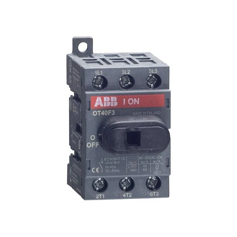 This ABB switch disconnector features a 0.75 to 10mm² cable cross-section with a top-in/bottom-out position of line terminals. The switch disconnector is suitable for diverse applications, in motor control centers, in switchboards and as main switches in various equipment and machines. · · · 11kW power rating · · 1.6W power loss per pole · · 0.8N·m tightening torque · · 7 in·lb · · 750V voltage rating · · Screw terminals