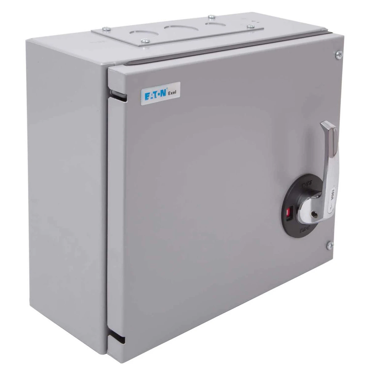 Exel 2 switch disconnectors and switch-disconnector fuses meet the constructional requirements for isolation of and are type tested to BS EN 60947-3. Switches are of the quick make and break type, suitable for use on AC or DC. Units have removable moving contact assemblies to facilitate wiring. Exel 2 surface-mounting enclosures are fabricated from rust-protected sheet steel with a light grey paint finish. Removable blank top and bottom end plates (except for 20 and 32A top end plates which incorporate knockouts) and gasket doors give IP41 protection. Chromium-plated front operated handles, with “ON (I) OFF (O) indication, and internal fixing enabling units to be mounted closely side by side. Interiors comprise porcelain bases fitted with non-ferrous conducting components. The motor ratings assigned to TPN switch-disconnector units are utilisation category AC23A (frequent operation) to BS EN 60947-3, which calls for make and break testing at 10 and 8 times rated current respectively for units having a motor rating up to and including 100 Amps. Ratings for switch-disconnector-fuses are dependent on suitable HRC fuses being fitted. HRC fuse carriers are designed for offset contact fuse links to BS 88: Part 2. Eaton HRC fuse links fitted to switchdisconnector- fuses are suitable on systems up to 415V AC. Eaton fuses used in these products are also suitable for 250V DC systems. All performance tests have been carried out using Eaton BS88 fuselinks. Units are fitted with HRC Fuselinks of maximum rating but will accept fuselinks of a lower rating, refer to the Paramount HRC Fuselinks section on page 101. HRC pattern switchfuses are fitted with type SCH carriers (20A, 32A, 63A-moulded; 100A, 125A-porcelain). · · · Quick make and break type · · Suitable for use on AC/DC · · Removable moving contact assemblies to facilitate wiring · · 100A · · Suitable for small commerial and residential · · This product is compliant with EN/IEC 61095 standard. · · Electrical endurance goes up to 30000 cycles for AC-7A. · · The maximum switching operations is 100 per day. · · The Ui rated insulation voltage is 500VAC. The Uimp rated impulse withstand voltage is 4kV.
