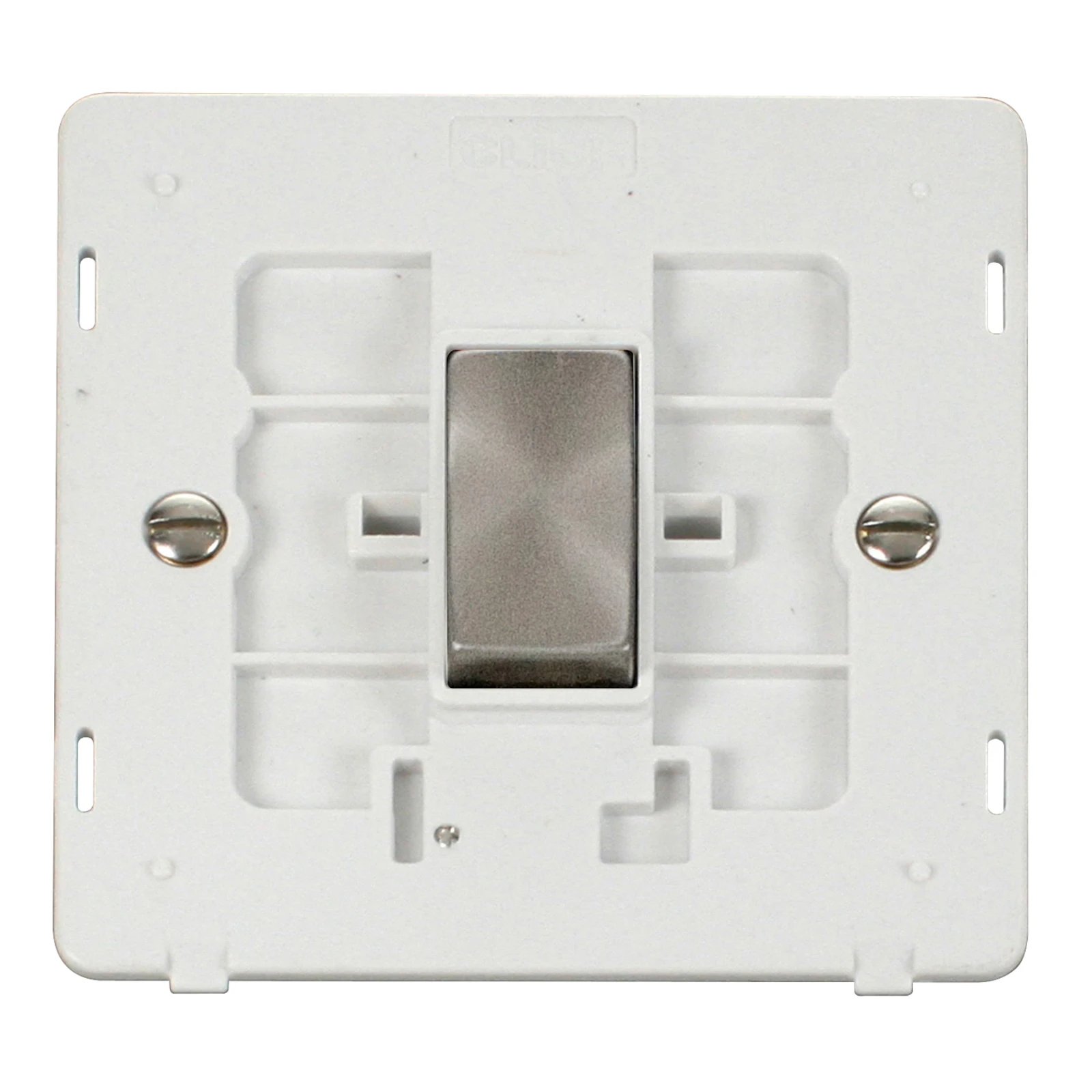 The Scolmore Definity 10AX Ingot 1 Gang 2 Way plate switch insert. The smooth, clean lines of Click Definity provide the ultimate finishing touch to a feature packed range of decorative domestic wiring accessories. Each Click Definity wiring accessories comprises an insert and a decorative cover plate. Plates are available in 5 different finishes as detailed in this catalogue and as illustrated below. UK Design Registration 3015621. Simply select the required insert and choice of cover plate finish. Cover Plate Finishes Available BS (Brushed Stainless), CH (Polished Chrome), SS (Stainless Steel), BK (Matt Black), PW (Polar White) & RD (Red). Interchangeable with modules in the MiniGrid Range · · · Load Rating 10AX (Suitable for Inductive Loads) · · 1 gang · · No. of ways 2 · · Plate Fixing Centres 60.3mm · · Maximum Voltage 250V · · Termination Type Screw · · Back Box Depth 25mm Minimum · · Operational Temperature -5C to +40C · · IP20 · · Insert Finish Polar White Insert With Brushed Stainless Switch