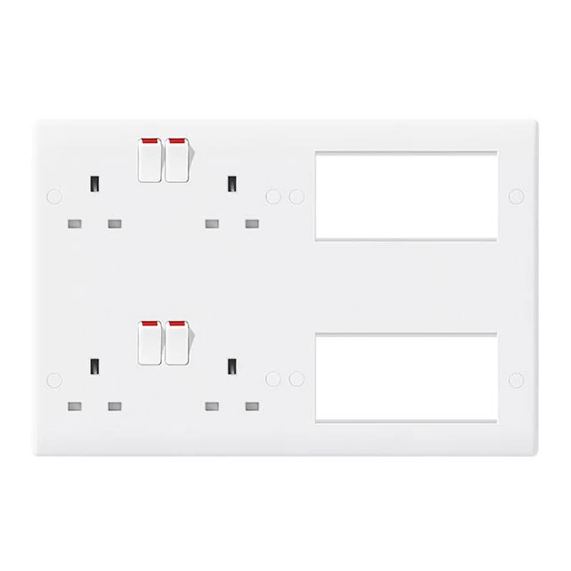 Switched Socket 8 Euro Module 2x 2 Gang 2 Pole 13A White