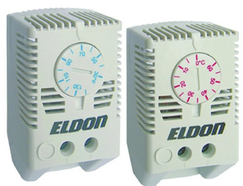 This adjustable temperature thermostat, ETR, for any enclosure, with either a normally open (NO) or normally closed (NC) contact, is used to control installed devices. Such devices could be a filter fan or a fan heater, that should turn on or off at the required temperature level, set by the user. The result is reduced operational cost. · · · Adjustable temperature thermostat, with either a normally open (NO) or normally closed (NC) contact. · · The thermostat allows energy to flow to a device when the set temperature has been exceeded (NO variant) · · Customers are able to adjust the thermostat’s temperature settings when equipment with special requirements are installed, such as batteries. · · The installed devices, such as filter fan units or fan heaters, automatically turn on or off when they are required, which reduces the operational cost of the control panel. · · Weight: 130g · · Depth: 70.5mm · · Reset Type: Automatic/Manual