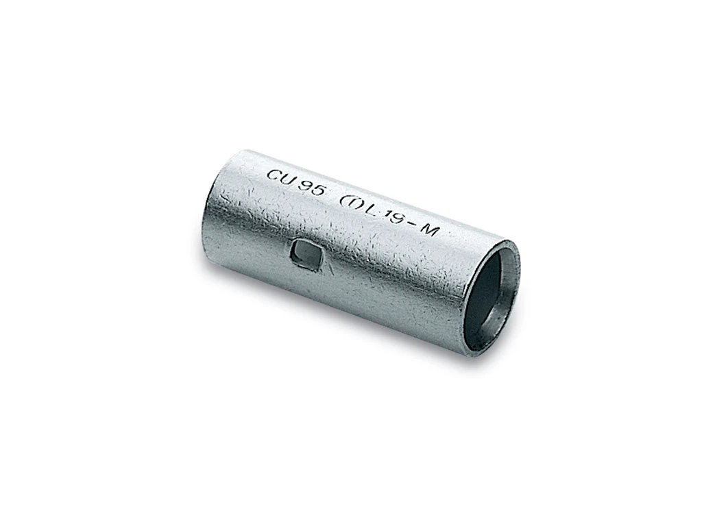 150mm² Copper tube through connector · · · Annealed to guarantee optimum ductility · · Facilitated introduction of the conductor · · -50°C to +150°C Temperature Range · · Maximum Voltage Rating: 11kV · · Manufactured from electrolytic Copper tube with a purity greater than 99.9% · · Electrolytically tin-plated to avoid oxidisation · · Fully Insulated: no · · CE: yes