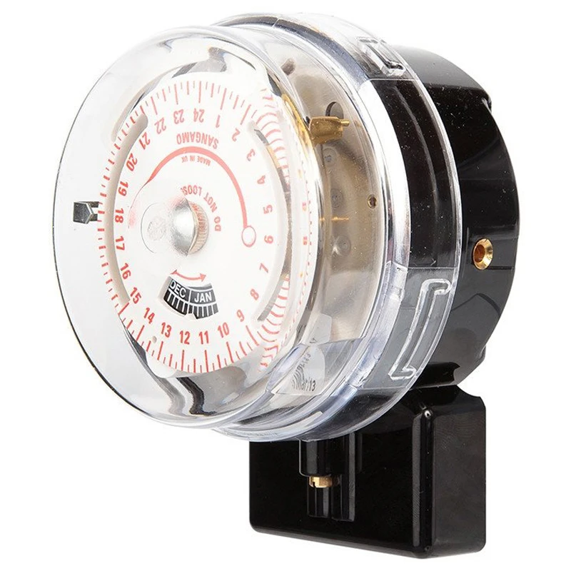 Sangamo Time Switch is solar dial quartz controlled with battery reserve and day omission, 3 pin base. The ON operation always tracks SUNSET while the OFF operation can be made either to track SUNRISE or to occur at a fixed time between 8:30pm and 1:00am. The Q550 comes in 4 separate ‘Zones’ relating to your latitude, see reverse for map. A “day omission” device allows you to select any number of days in the week on which the switching cycle can be disabled. · · · 24 hour programming with 1 ON/OFF operation per day · · Solar dial display · · Designed to operate over a temperature range of 0°C to 50°C continuous · · Class 1 shock protection · · ideal for applications which require control linked to sunset and sunrise times · · Popular applications for solar time switches include street, stairwell and security lighting · · Track SUNSET and SUNRISE throughout the year, without the need to sense light levels · · Avoids the installation and maintenance problems associated with photo sensing devices