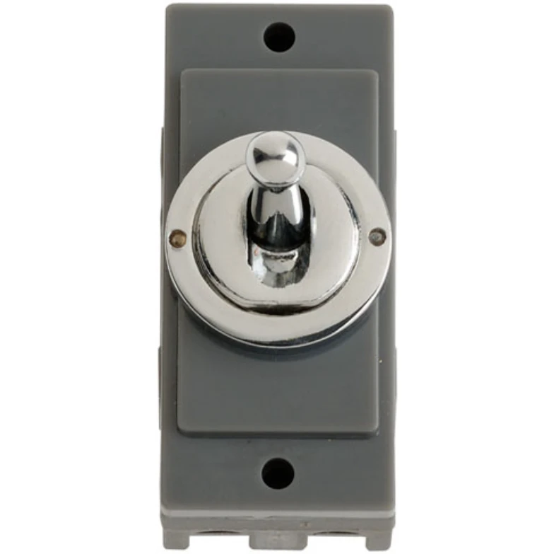 Click Minigrid MD9125CH 10AX Intermediate Toggle Switch Module Chrome. The Click Minigrid MD9125CH 10AX Intermediate Toggle Switch Module Chrome is part of Click’s diverse range of eye-catching Minigrid modules. Mounting these switches on Click Minigrid plates is quick and easy, thanks to their simple single screw fixing. They are also fully interchangeable, so you can enjoy the flexibility of customisable switching solutions · · · 10AX (Suitable for Inductive Loads) · · Intermediate · · Click Minigrid · · Toggle Switch Module · · Back box depth -16mm minimum