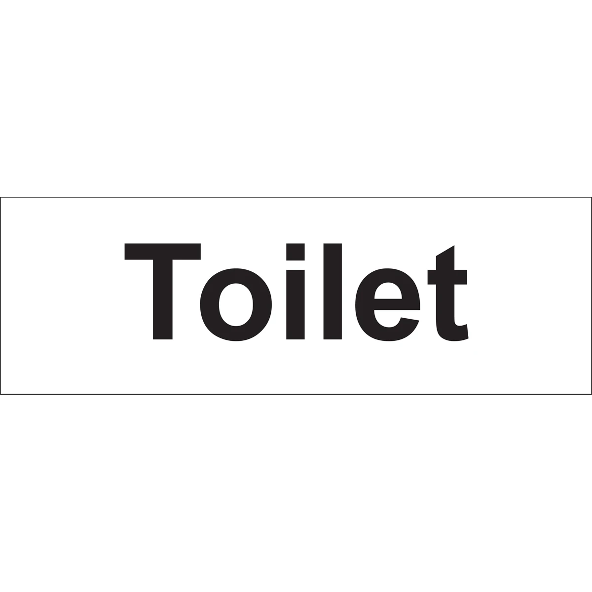Door sign with “Toilet” written in black on a white background for easier viewing. · · · Self adhesive sign · · Black font on a white background · · High-quality digital printing · · Glossy Finish · · UV resistant · · Easy to install