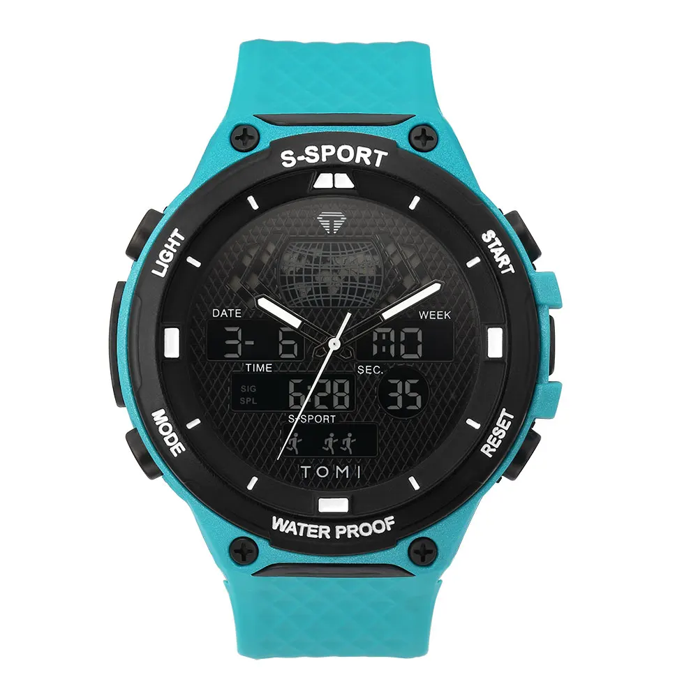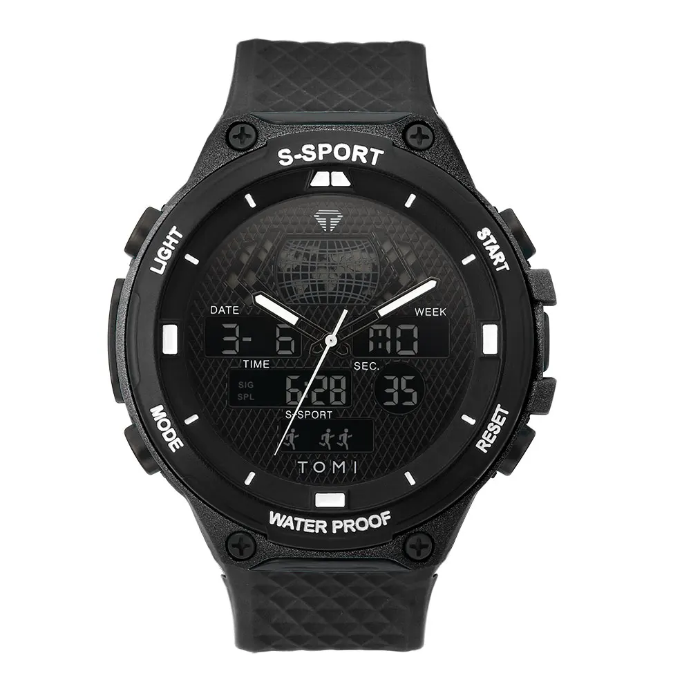 TOMI Sport Digital Watch LED Dual Display Simple Multi-function Stop Watch Feature 50mm Dial Diameter Leather Band Hangzhou Pack of 10