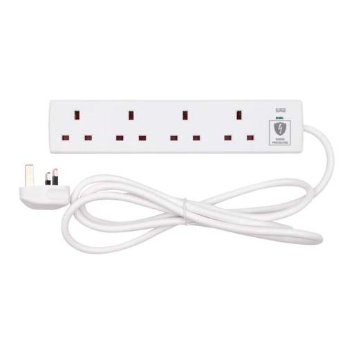 Tower 2m 4 Gang Surge Protected Extension Lead White