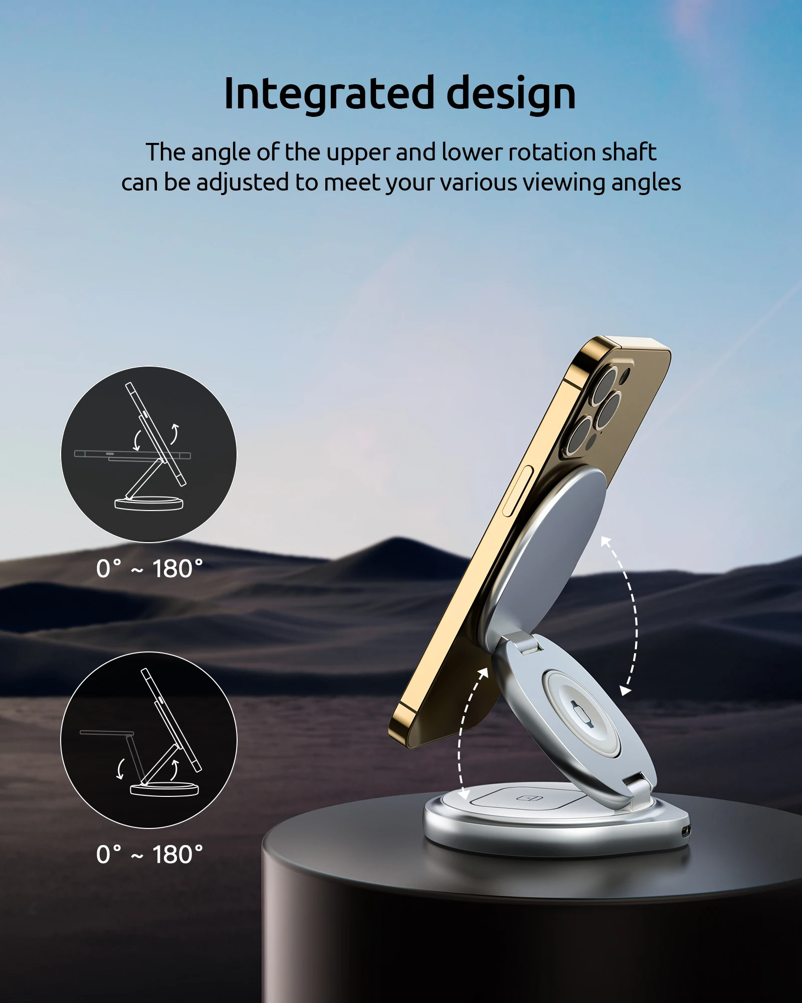 Trending W27 3-in-1 Metal 360 Degree Rotatable Wireless Charger 25W Fast PD3.0 Charging Folding Magnetic for iphone 17 Pro Max Pack of 5