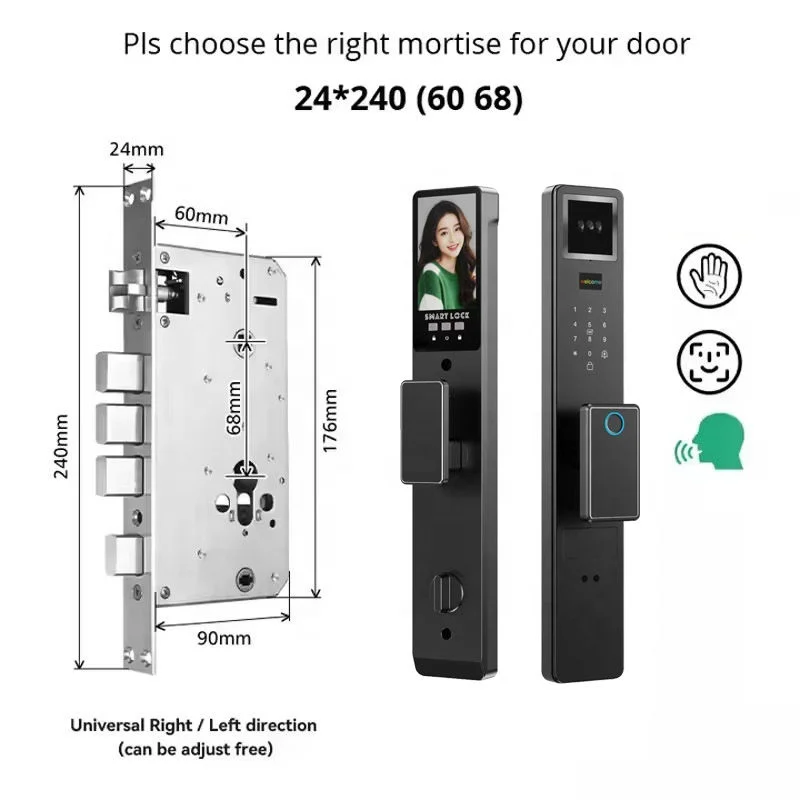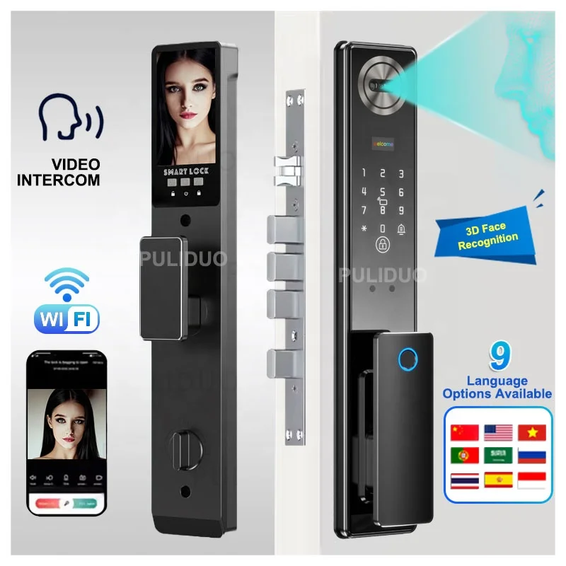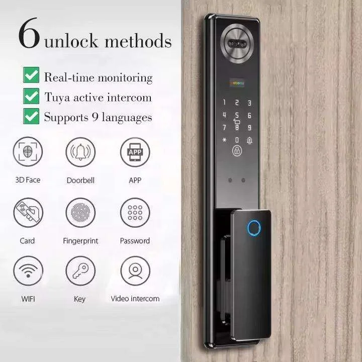 Tuya WiFi 3D Face Smart Locks Fingerprint ID Smart Lock Cerradurai Inteligente Digital Door Lock Video Intercom 6068 Lockbody Pack of 2