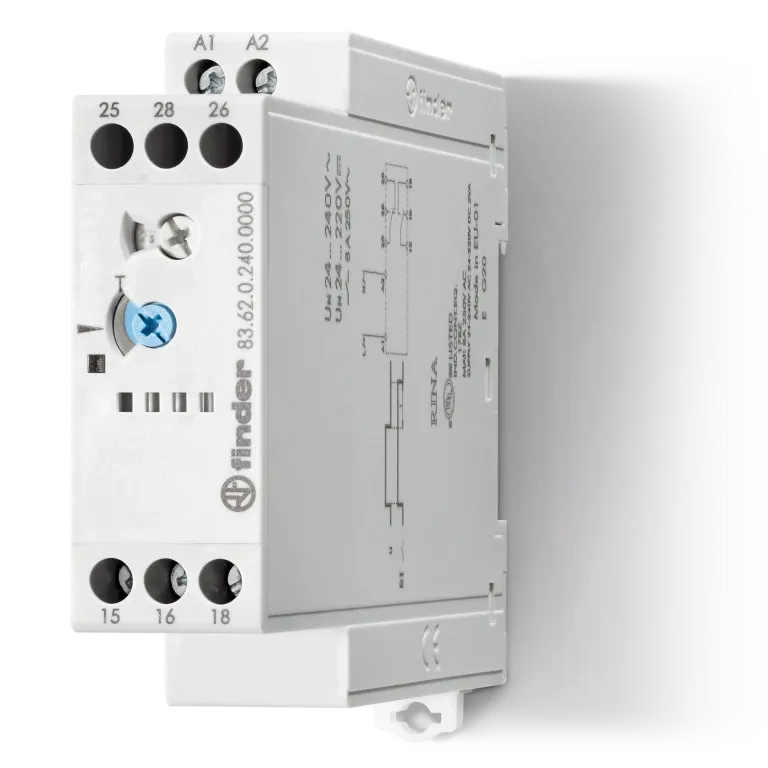 Type 83.62 Power off-delay (True off-delay) modular timer, 2 pole, multi-voltage. · · · Mono-function · · Time scales: 0.05 s to 3 minutes · · True Off Delay · · Wide supply range (24…240)V AC/DC · · 22.5 mm wide · · 35 mm rail (EN 60715) mount · · “Blade + cross”: Both flat blade and cross-head screwdrivers can be used to adjust the range and function selectors, the timing trimmer, and to disengage the 35 mm rail clip · · Compliant with EN 45545-2: 2013 (protection against fire and fumes) and · · Compliant with EN 61373 (resistance to shock and vibration, category 1, class B) · · Compliant WithEN 50155 (resistance to temperature and humidity, class T1)
