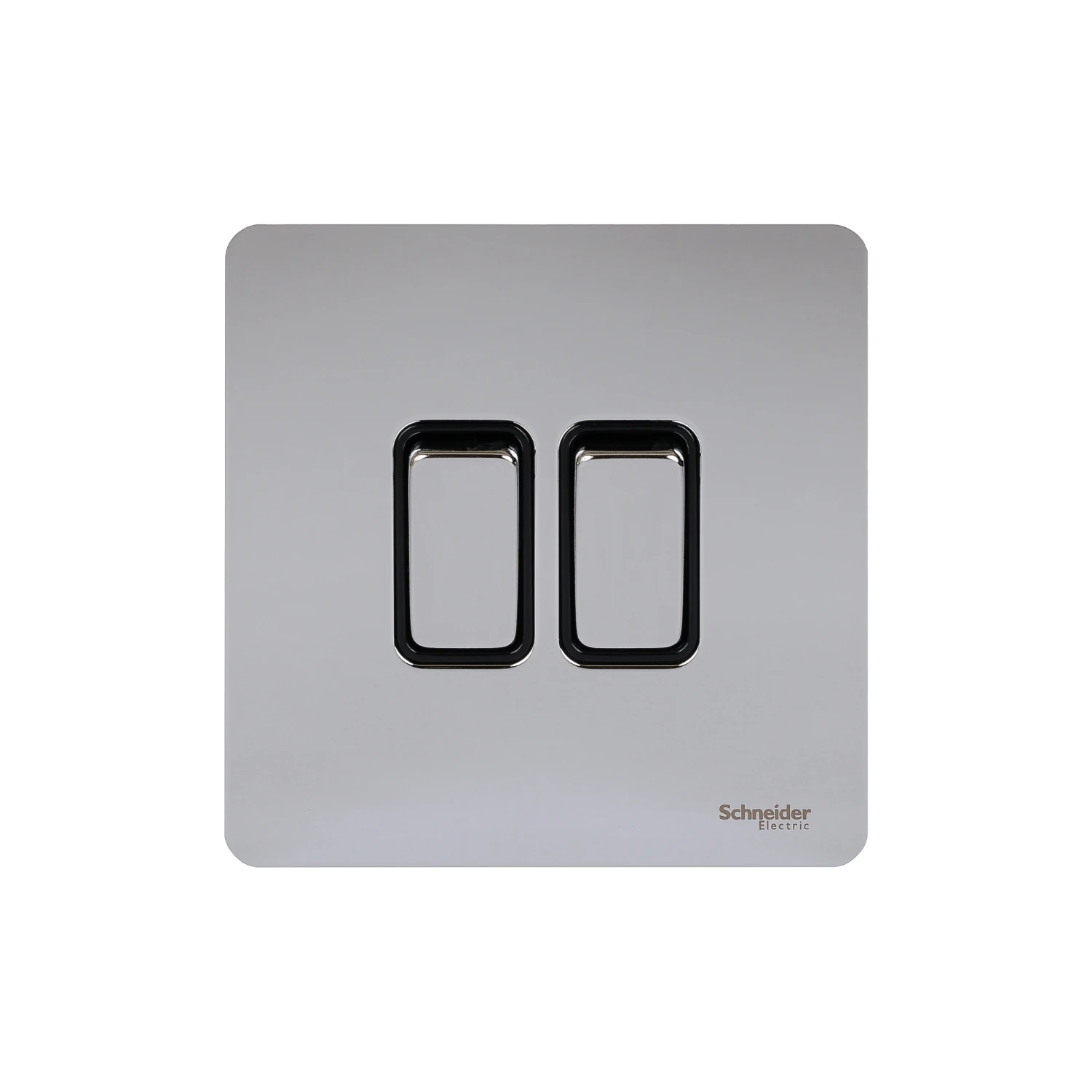 Ultimate Screwless Flat Plate 2-Way Plate Switch 2 Gang Black Chrome