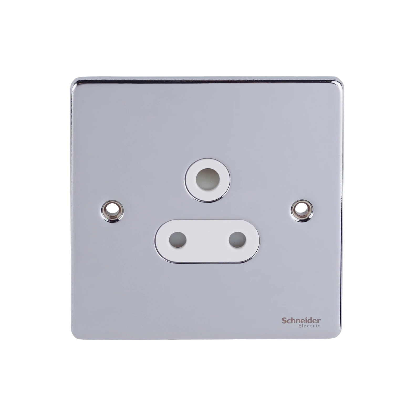 Ultimate Socket 1 Gang Round Pin Unswitched 5A Polished Chrome Low Profile White