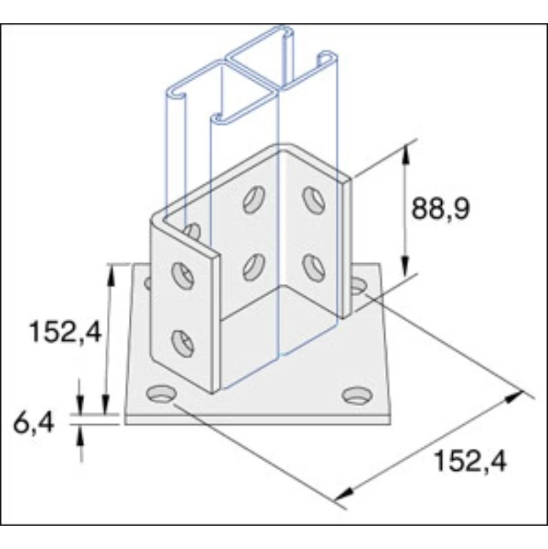 Unistrut – Cbl Tray+Lad&Ftgs P2073A Baseplate c/w 8 Hole U Bracket for Back to 152.4×88.9mm Steel Hot Dipped Galvanised Channel Sections · · · Product: Plate · · Type: Base · · Material: Steel · · Finish: Hot Dip Galvanised · · Length Min Max: 152.4 mm · · Width: 88.9 mm · · Unit Weight: 2.46 kg
