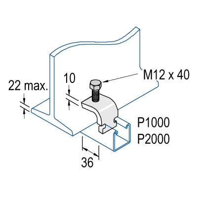 Unistrut Beam Clamp 22 36mm M12 Steel Hot Dipped Galvanised